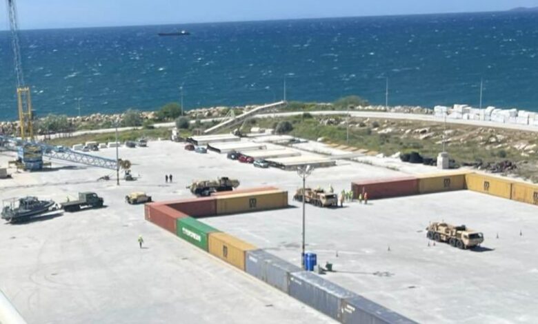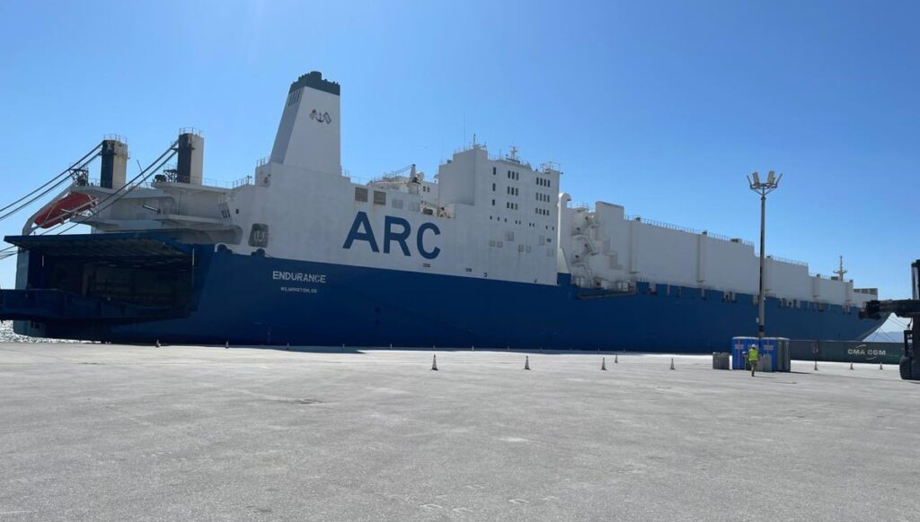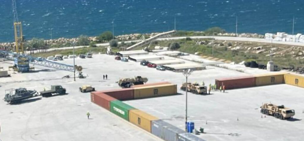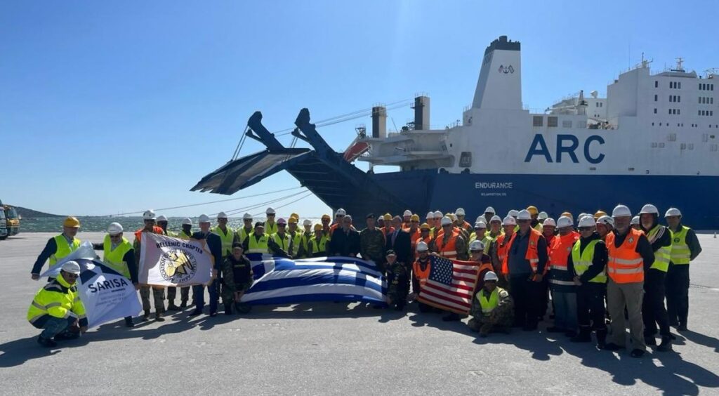 Amerikan askeri nakliye gemisi “Endurance” Kavala’nın Nea Karvali’deki (Yeni Gelveri) “Filippos B” ticari limanına demirledikten sonra, getirdiği ağır silah ve konteyner dolusu mühimmat ve savaş malzemelerini limandaki alanın tamamına yakın bir alana boşaltmaya devam ediyor.