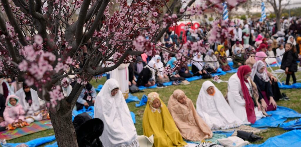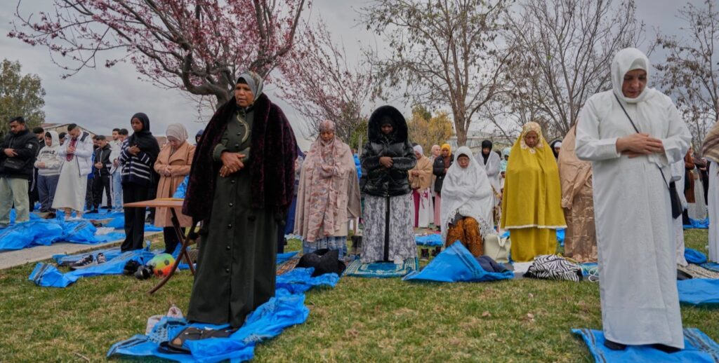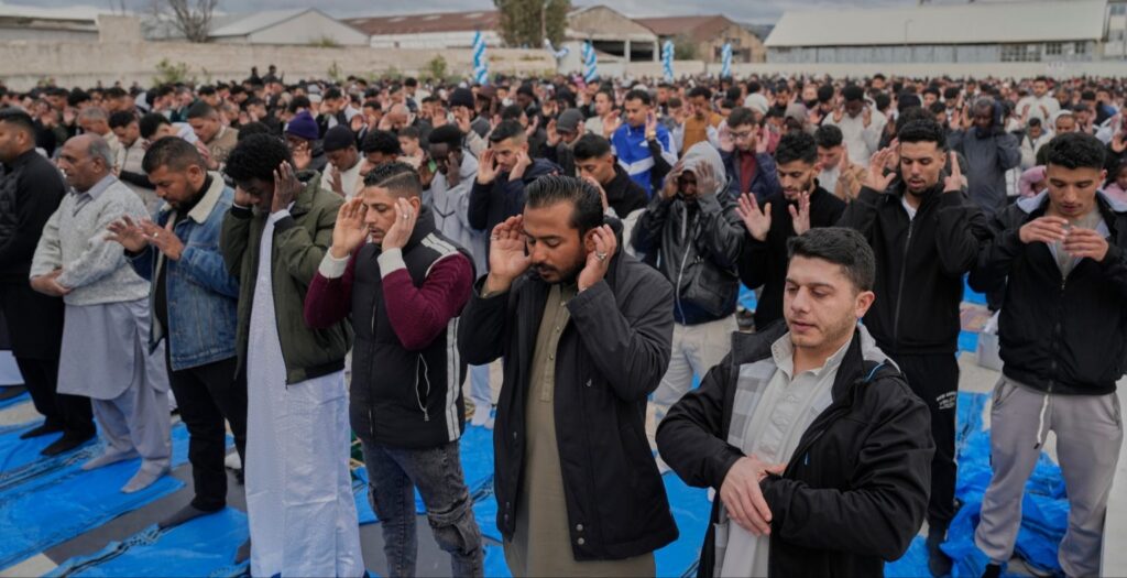 Atina ve çevresindeki Müslüman topluluklar, Ramazan ayının sona ermesiyle birlikte bayram namazı için meydanlarda, boş arazilerde ve depo benzeri kapalı alanlarda toplandı. Çiçek açan bahar ağaçlarının altında, serdikleri mavi brandaların ve seccadelerin üzerinde yan yana gelen binlerce kişi, her türlü imkansızlığa rağmen bayram geleneğini yaşatmaya çalıştı. Kadınlar, erkekler ve çocuklar; en güzel kıyafetleriyle katıldıkları bu toplu ibadette barış ve huzur için dua etti.
