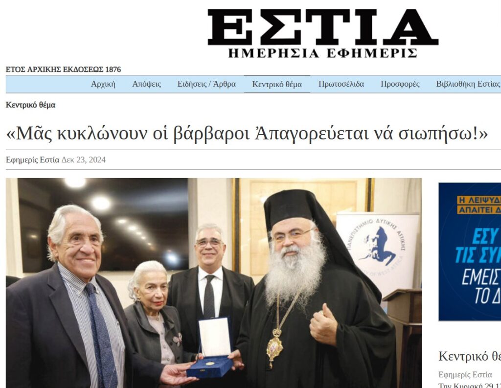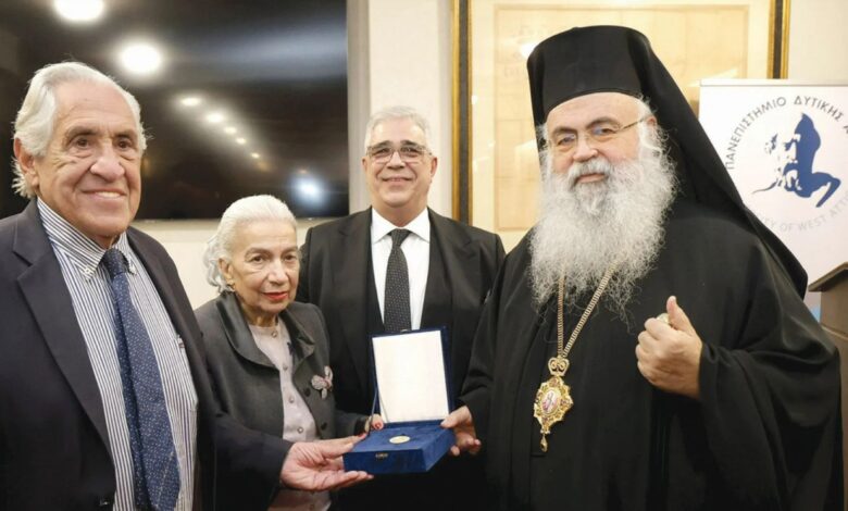 Güney Kıbrıs Başpiskoposu Georgios’a, Batı Attika Üniversitesinde “fahri doktora” unvanı verildi.