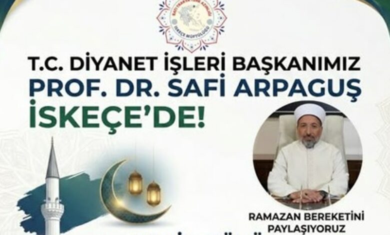 Batı Trakya’nın Rodop, Meriç ve İskeçe ve civar köylerde Ramazan bereketi, anavatandan gelen çok özel bir misafirle taçlanıyor. T.C. Diyanet İşleri Başkanı Prof. Dr. Safi Arpaguş, Batı Trakya Türk Azınlığı ile kucaklaşmak üzere bölgeye geliyor.