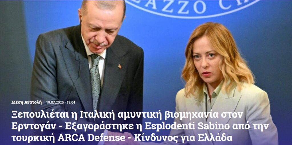 Türk savunma sanayii şirketi ARCA Defense’nin, İtalyan Esplodenti Sabino şirketini satın alması Yunan basınında şu yorumlarla yankı uyandırdı: “Erdoğan’a satılan İtalyan Savunma Sanayii: Esplodenti Sabino, Türk ARCA Defense tarafından satın alındı. Yunanistan için tehlike.”