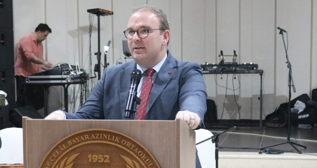“Bu özel gününüzde Türk – Yunan dostluğunun bir sembolü olarak açılan okulunuzun mezuniyetinde, sizlerle birlikte olmak benim için büyük bir mutluluk ve gurur kaynağıdır. Mezunları tebrik ediyorum, çabalarınız ve azminiz için sizleri tekrar tebrik ediyorum. Değerli veliler, büyük bir özveriyle üzerine titrediğiniz, bu ana gelene kadar türlü fedakarlıklarda bulunduğunuz evlatlarınıza mutlu günlerinde onlara eşlik ediyorsunuz. Onların bu güzel güne ulaşmasında sizlerin emeği büyüktür. Değerli öğretmenler sizler mesleklerin en kutsalını yapıyorsunuz. Seneler boyunca bugün mezun olan gençlerin bilgi ve gelişmesinde dünyaya bakışlarında perspektif sunmalarında büyük bir sorumluluk üstlendiniz. Sizlerden öğrendikleri ile hayatlarında yeni bir evreye atılıyorlar.