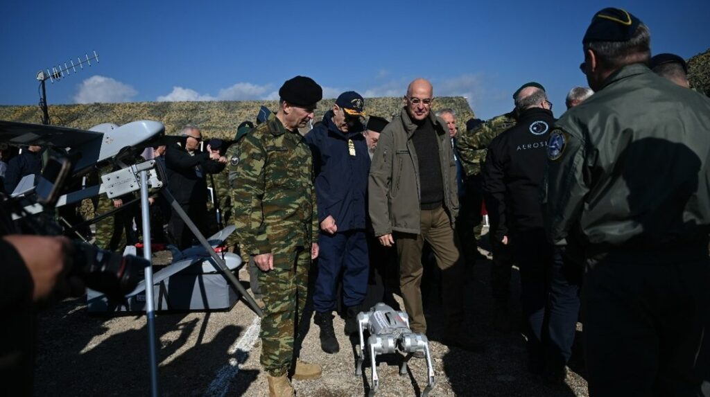 Yunanistan Savunma Bakanı Dendias, Taktik Kullanım İHA-SİHA ve “Esios İonos 2025″ askeri tatbikatının final aşamasına katılarak yeni teknolojileri tatbikat alanında Genelkurmay Başkanı ve kuvvet komutanlarıyla birlikte izledi.