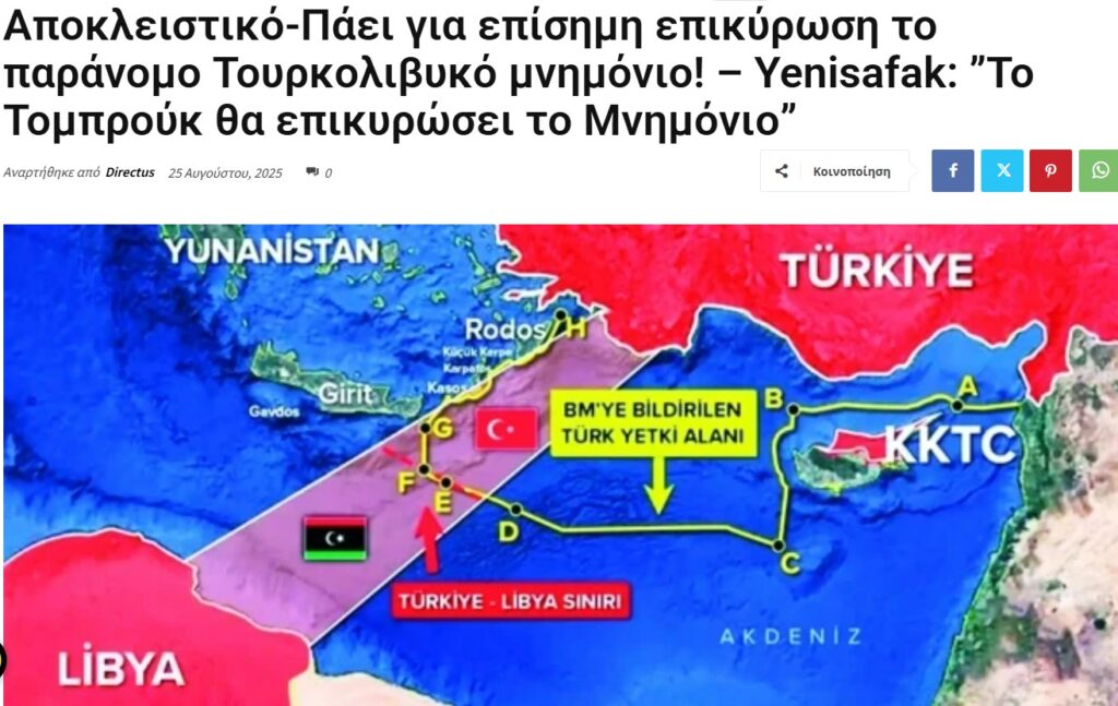 Yunan directus.gr gazetesi, Yeni Şafak gazetesinin Libya-Türkiye arasında yaşanan önemli gelişmeleri konu alan bir haber yayımladı.