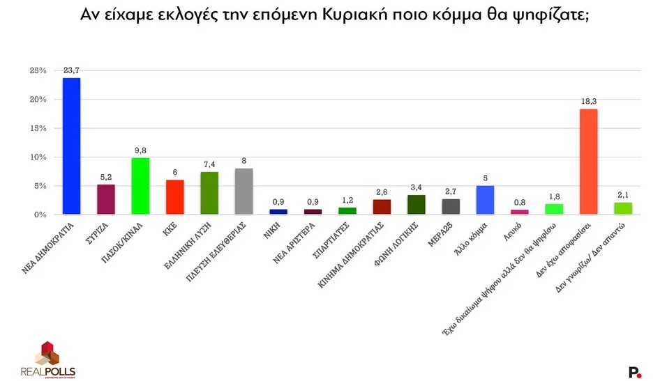 Real Polls anketinden şok sonuçlar: ND'ye büyük oy kaybı, halkın %40'ı suçu Miçotakis'te buluyor.