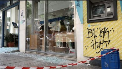 Atina’nın merkezindeki gösterinin ardından Kukaki’ye geçen 40-50 kişilik grup, dükkanlara ve bir bankamatiğe büyük hasar…