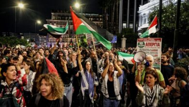Atina’da Global Sumud Filosu için Dışişleri Bakanlığı önünde büyük protesto yürüyüşü yapıldı. Göstericiler, “Bu kendini…
