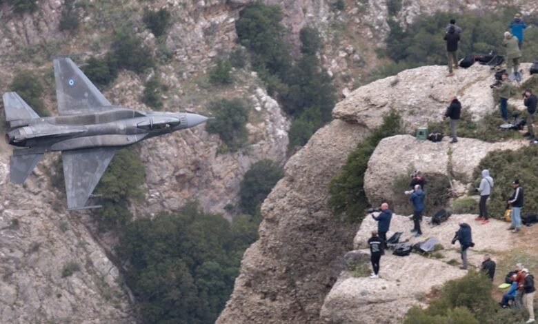 Çokuluslu “İniochos 2025” tatbikatının belki de en etkileyici ve en zor görüntüsü Fan Flight’tır. Yani savaş uçaklarının alçak irtifada bir kanyondan geçişi. Ve özellikle Kalavrita’nın kuzeyindeki Vouraikos Geçidi’nden, çevredeki yamaçların günümüzde Spotter’larla, yani dünyanın her köşesinden savaş uçağı fotoğrafçılarıyla dolu olduğu yerde büyük heyecan yaşanıyor. Pilotlar çok heyecanlı, kanyondan muhteşem bir şekilde geçiyorlar.