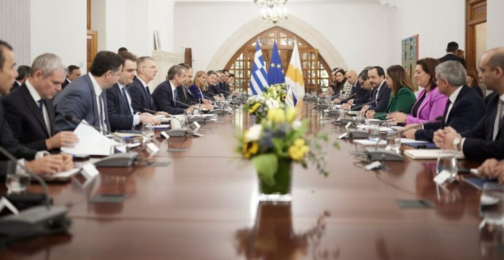 Yunanistan Başbakanı Kiriakos Miçotakis ve Güney Kıbrıs Cumhurbaşkanı Nikos Hristodulidis Güney Lefkoşa’da, Yunanistan ve Güney Kıbrıs Hükümetlerarası Zirvesinde bir araya geldi.