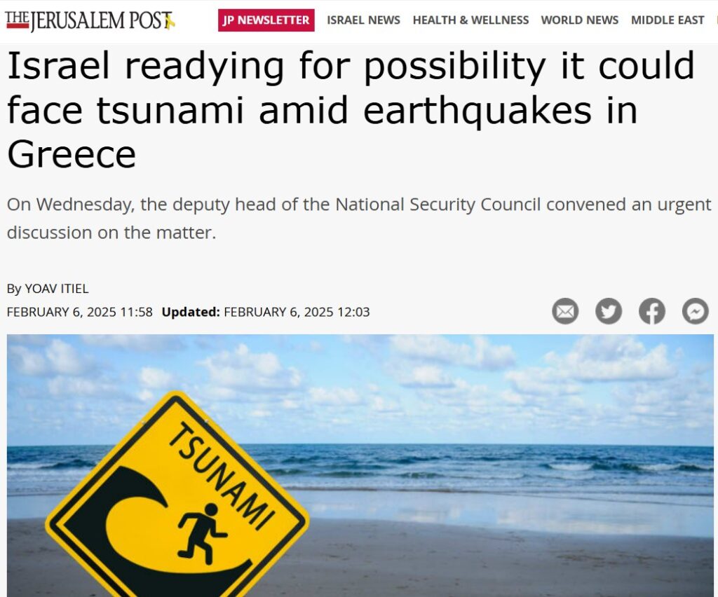 İsrail’in “Jerusalem Post” gazetesi, Yunanistan’ın Santorini adasında olası meydana gelecek bir deprem sonrası oluşabilecek tsunamiye hazırlandığını ile sürülen bir haberi okuyucularıyla paylaştı.