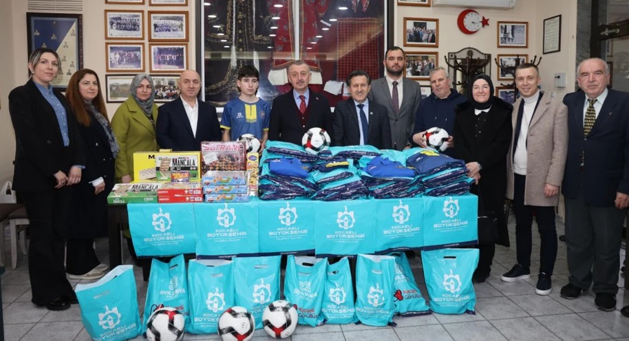Ziyarette İskeçe Türk Birliği futbol takımına formalar hediye edilirken, bölge halkına da bin adet Ramazan kolisi dağıtıldı.