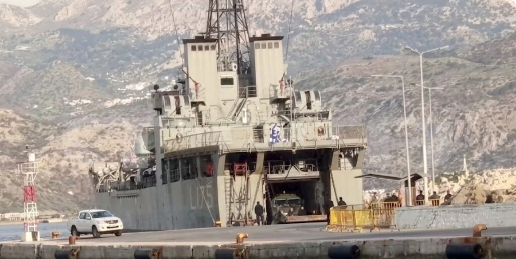 Yunan basınına göre, Yunan Deniz Kuvvetleri’ne ait bir çıkarma gemisi bu sabah Kerpe’nin Pigadia Limanı’na yanaştı. Yayınlanan görüntülerde, Orta Doğu’daki gelişmelerin ardından ülkenin hava savunma kalkanını ve güvenliğini güçlendirme kapsamında Patriot füze bataryasının gemiden indirildiği görülüyor.
