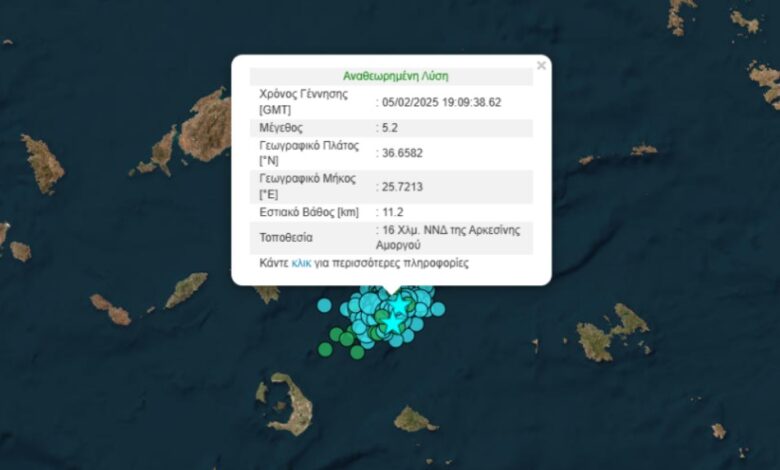 Binlerce deprem sarsıntısının başladığı günden beri en büyüğü Çarşamba günü saat 21:09’da Amorgos’un güneybatısında meydana geldi ve Richter ölçeğine göre 5.2 büyüklüğündeydi.