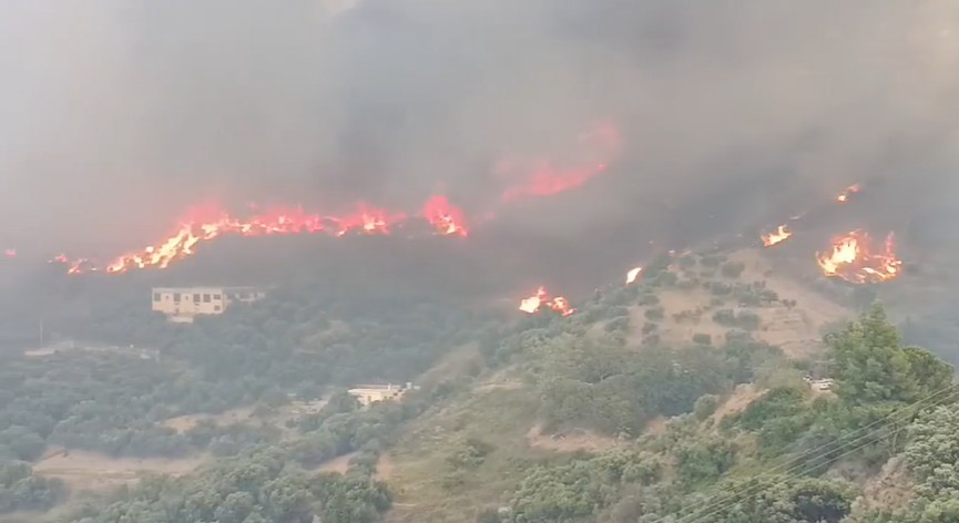 Sakız Adası: İki cepheli yangınla mücadele ediliyor. İlk cephe Sidirounta köyü yönünde, ikincisi ise Fita köyü yönünde ilerliyor. Havadan müdahale için 2 uçak ve 6 helikopter kullanılıyor. Yangınlarda 150’den fazla elektrik direği yandığı için elektrik şebekesinin onarımı günlerce sürecek.