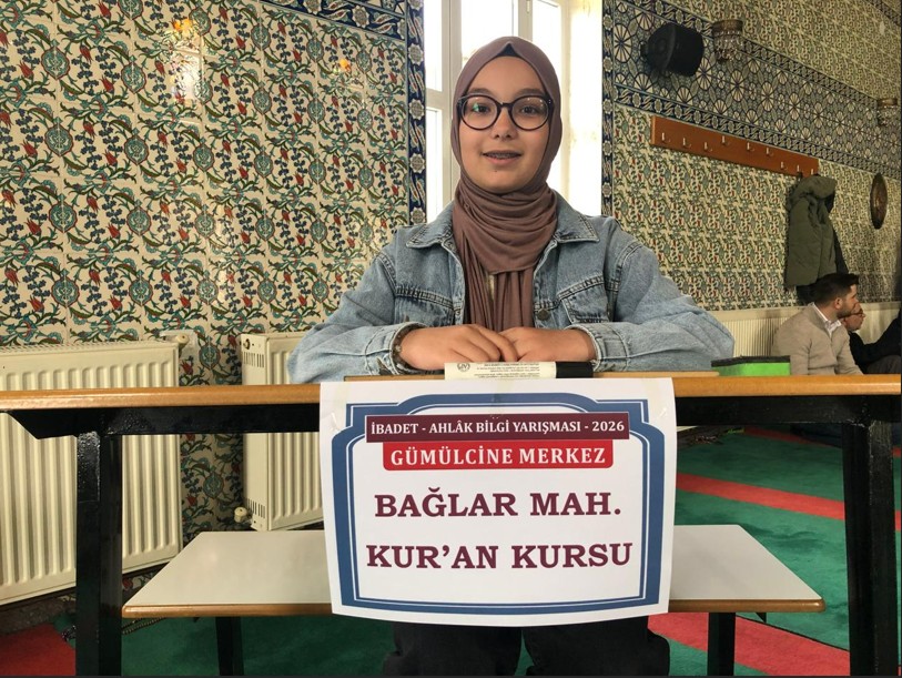 Gümülcine Merkez Bağlar Mahallesi Kur’an Kursu öğrencisi Berra Çakır Nazif birinci,
