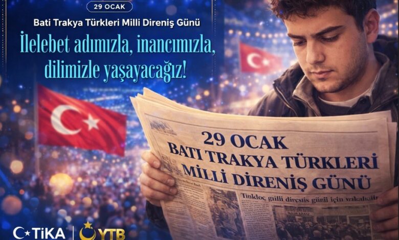 Türk İşbirliği ve Koordinasyon Ajansı Başkanlığı (TİKA) ile Yurtdışı Türkler ve Akraba Topluluklar Başkanlığı (YTB), Batı Trakya Türklerinin kimlik mücadelesinin simgesi olan 29 Ocak Milli Direniş ve Toplumsal Dayanışma Günü dolayısıyla ayrı ayrı anlamlı paylaşımlarda bulundu.