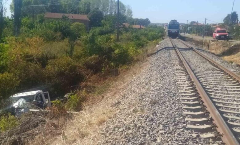 Tren kamyonete çarptı, sürücü şans eseri kurtuldu.