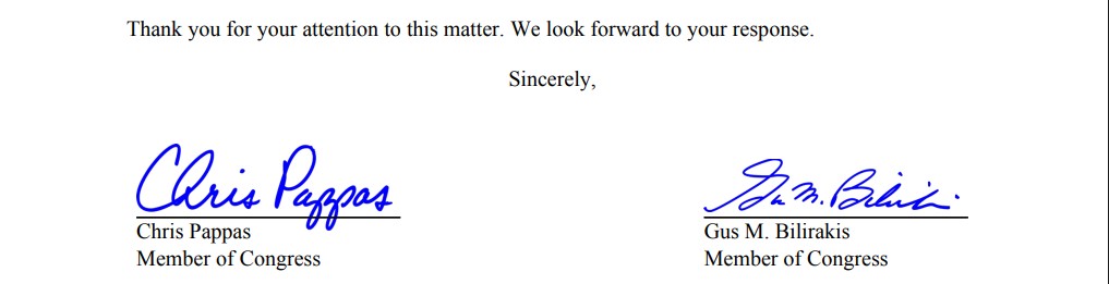 Özellikle, Kongre Üyeleri Chris Pappas, Gus Bilirakis, Dina Titus ve Nicole Malliotakis (Yunanistan Parlamenter Grubu eş başkanları ve başkan yardımcıları) liderliğinde, iki partiden oluşan bir grup meslektaşlarıyla birlikte Dışişleri Bakanı Marco Rubio ve Savunma Bakanı Pete Hegseth’e bir mektup gönderdi. Bu mektupta, Türkiye’nin Rus S-400 füze sistemlerine sahip olmasına rağmen, Trump yönetiminin Türkiye ile F-16 ve F-35 savaş uçaklarının satışı hakkındaki görüşmelerine karşı olduklarını ifade ediyor ve yönetimi böyle bir satışa girişmeden önce Amerikan yasalarına saygı göstermeye ve uymaya çağırıyorlar.