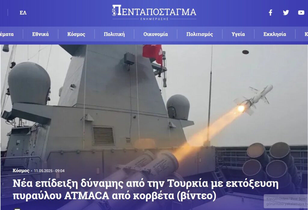 Yunan basını Türkiye’nin yerli ve milli imkanlarla ürettiği ATMACA güdümlü füzesinin her aşamasını yakından takip etmeye devam ediyor.