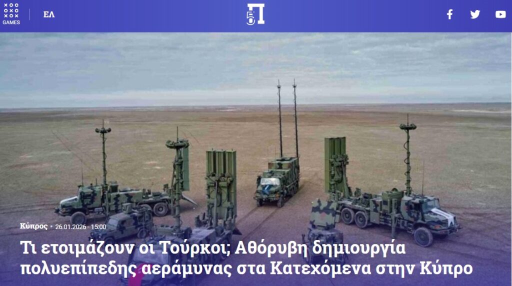 Yunan basını oldukça önemli bir haber yaparak okuyucularına servis etti. Yapılan haberde ilgi çeken başlıklar şunlar: “Türkiye’nin KKTC’de tek bir sistem değil, entegre bir hava savunma ekosistemi inşa ediyor. HİSAR ailesi, radarlar, elektronik harp ve İHA’lar tek merkezden yönetiliyor. STR-700G radarları Doğu Akdeniz’in büyük bölümünü kapsıyor. T-155 Fırtına obüsleri, hava kuvvetine ihtiyaç duymadan derin vuruş imkânı sağlıyor.”