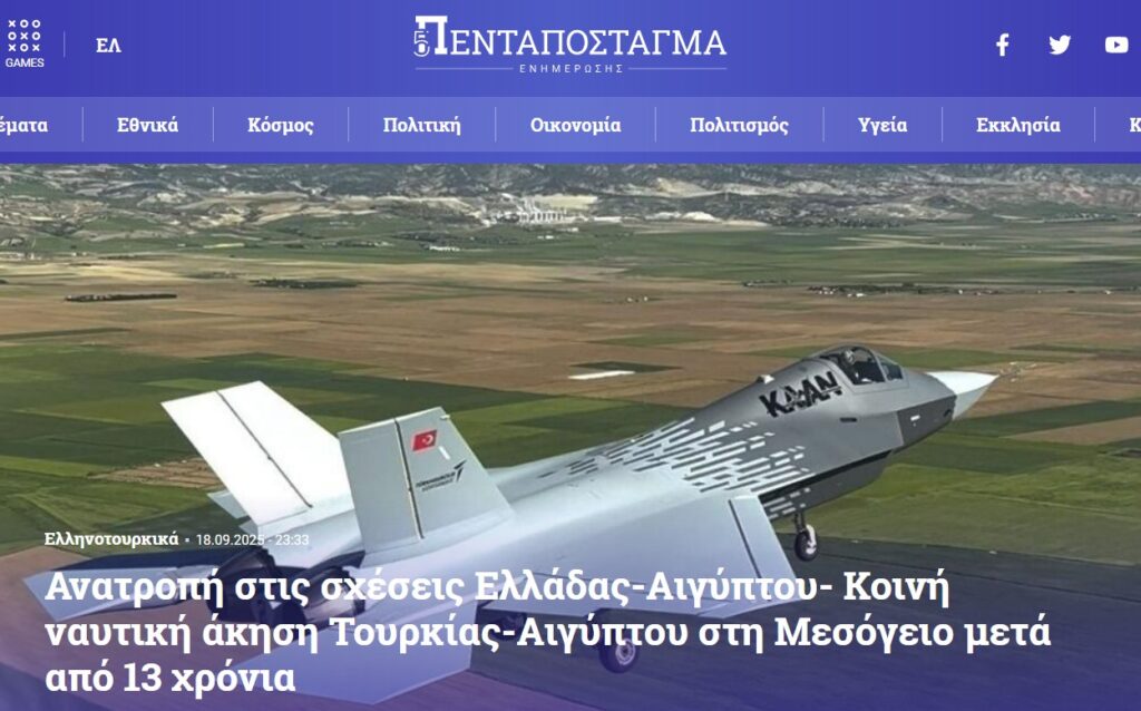 Pentapostagma haber sitesinin daha önce yaptığı bir değerlendirme, Türkiye ve Mısır arasındaki yakınlaşmayla ilgili endişelerini dile getirmişti. Haberde, Yunanistan ile Mısır arasındaki “çok iyi ilişkilerin” önümüzdeki dönemde Cumhurbaşkanı Erdoğan’ın etkisiyle sınanabileceği belirtiliyordu. Erdoğan’ın, ülkesinin savunma sanayisini bir araç olarak kullanarak Mısır Devlet Başkanı Sisi’yi kendi tarafına çekmeye çalıştığı ifade edilmişti. Bu endişeler, Türkiye ve Mısır’ın ortak bir deniz tatbikatı düzenleyeceklerini duyurmasıyla doğrulanmış oldu.