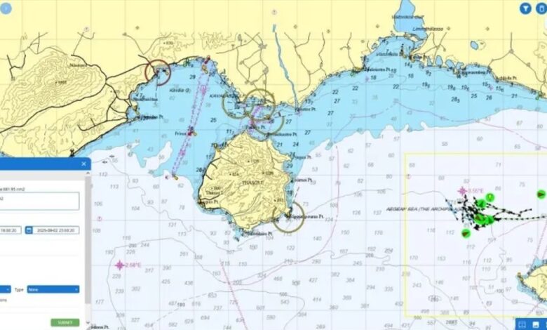 Yunan Sahil Güvenlik, Türk balıkçı teknelerinin Semadirek’teki hareketlerini gösteren bir harita yayınladı.