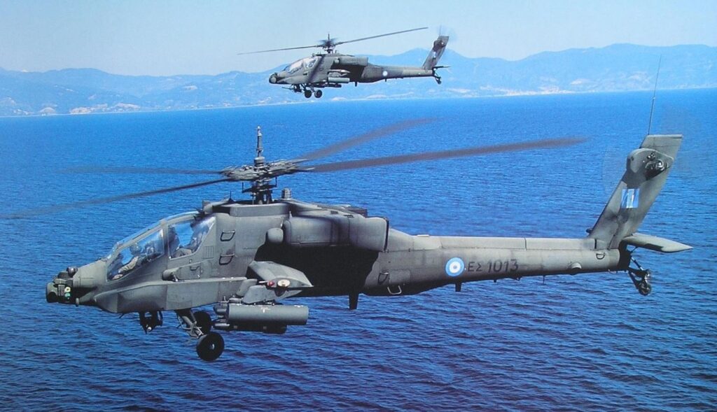 Apache helikopteri, özellikle tanksavar ve kara hedeflerine yönelik operasyonlarda, Yunan müşterek silah doktrininin merkezi bir parçası olmaya devam ediyor.