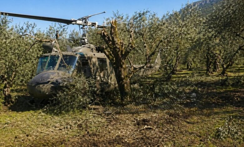 Yunanistan’ın Girit Adası’nda geçtiğimiz Pazartesi günü teknik bir arıza nedeniyle Amariano köyü yakınlarındaki bir zeytinliğe acil iniş yapan Agusta Bell tipi arama-kurtarma helikopteri, dev bir operasyonla tahliye edildi.
